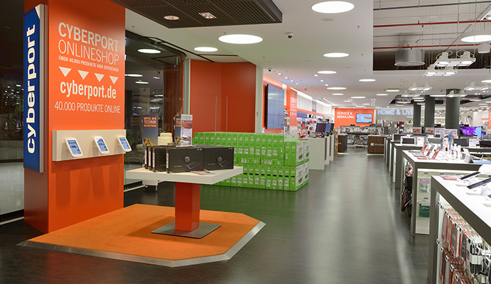 WSB concept de magasin a développé un nouveau concept rétail de Cyberport À Munchen. WSB a construit ce concept en peu de temps et aux prix compétitifs en utilisant ses connaissances et créativité. En bref, nos clients sont très content de notre collaboration.