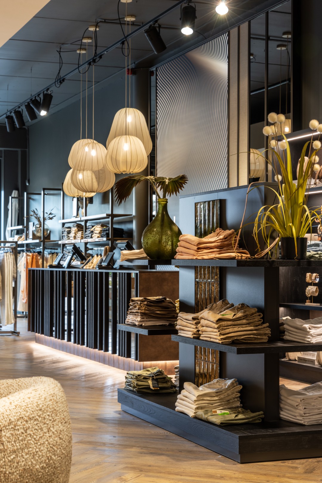 Pour ce client fidèle, nous avons réalisé une transformation complète du magasin. La base était déjà bonne, un établissement élégant avec du caractère, mais le souhait était de faire en sorte que l’intérieur corresponde pleinement à l’image actuelle de la mode et aux comportements d’achat en évolution des clients.